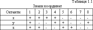 Знаки координат, які відповідають тому чи іншому октанту, наведені в таблиці