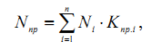 коефіцієнт приведення для кожного з найменувань деталей, що зібрані у