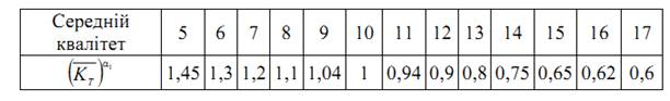 – середні значення квалітету точності поверхонь деталі, що розглядається і