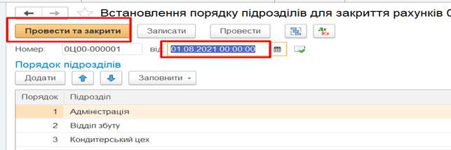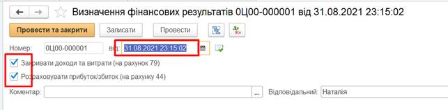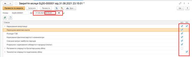 місяця (Операції – Закриття місяця). Дата документа 31.08.2020. В відкритому документі зняти галочку в рядку Регламентовані операції по