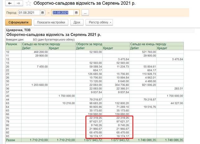 Завдання 5. Далі необхідно сформувати Оборотно-сальдову відомість за серпень. Всі