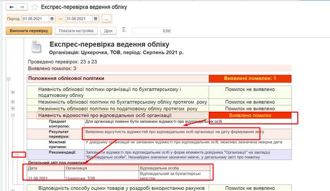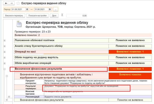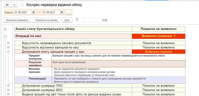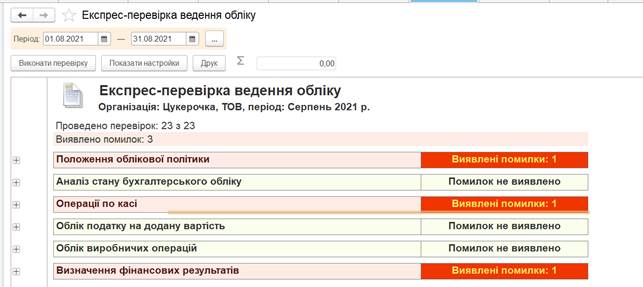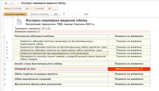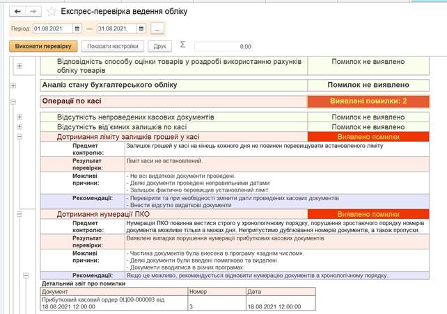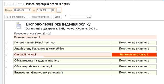 Цей документ показує чи є помилки при ведені обліку. Наступний