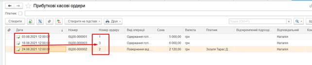 поміняти нумерацію ПКО. Потрібно відкрити документ за 24.08 та змінити номер