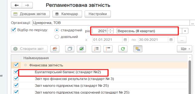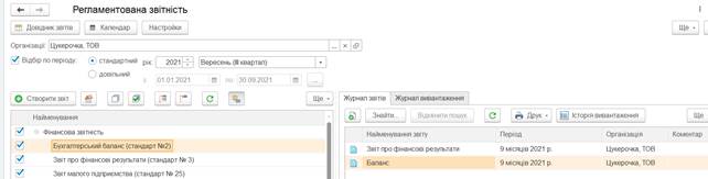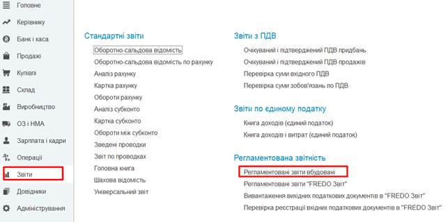 Звіти – Регламентовані звіти (вбудовані),
