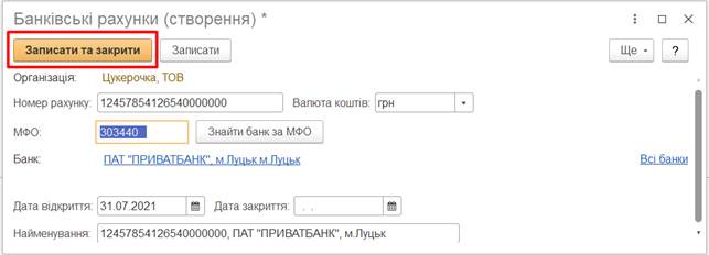 банківський рахунок в інформаційну базу необхідно натиснути на кнопку Створити (рис.2).