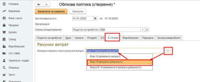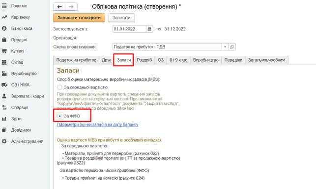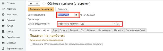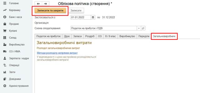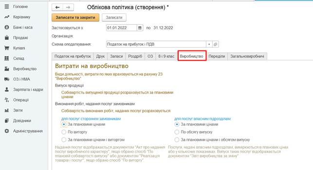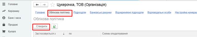 етапом роботи, є заповнення інформації про облікову політику підприємства.
