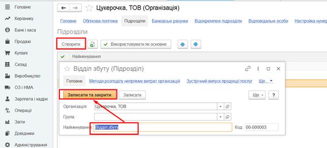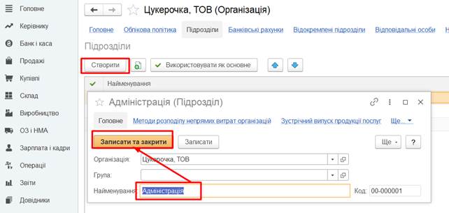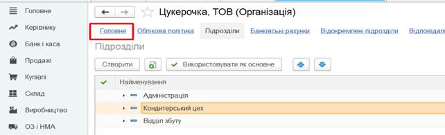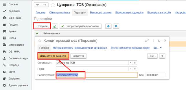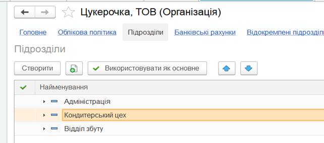 Адміністрація, Кондитерський цех, Відділ збуту. Порядок створення підрозділів