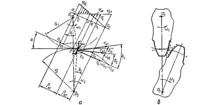 зачепленні, мають місце відносні перекочування та ковзання профілів зубців. Швидкість vs ковзання