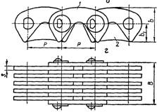 зігнутими пластинами (рис. 2, в). Такі ланцюги мають однотипні ланки і число
