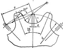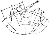 Висота зубця h = b1 + е, де b1 – відстань від осі шарніра до вершини пластини і е = 0,1P – радіальний зазор. Кут