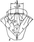простіше, оскільки робочі профілі прямолінійні (рис. 3, д). Діаметр ділильного кола d визначається за тією самою залежністю (1), що і в