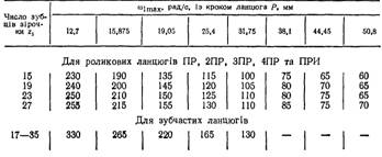 м/с; інколи при малих кроках ланцюга, великому числі зубців та доброму
