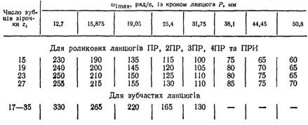 Таблиця. Граничні кутові швидкості меншої зірочки
