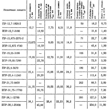 Таблиця. Параметри приводних роликових ланцюгів