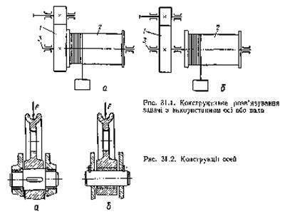 влаштовуються в насаджуваних на вісь деталях. Осі завжди мають прямолінійну