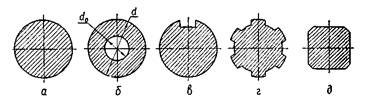 За видом поперечного перерізу вали можуть бути суцільними (рис. 3, а) або порожнистими (рис. 3, б), а за обрисом перерізу