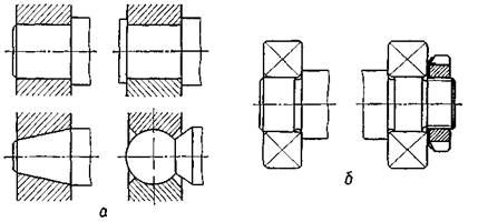 Цапфи валів, що працюють у підшипниках ковзання, можуть бути циліндричними, конічними або сферичними (рис. 4, а). Циліндричні цапфи мають