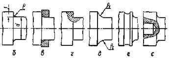 б). Радіус галтелі ρ вибирають меншим за радіус закруглення або за