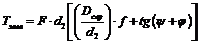 підйому різі, j – кут тертя в різі, d2 – середній діаметр різі.