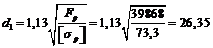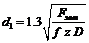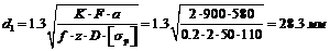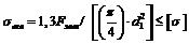 небезпечного перерізу оцінюють приблизно за внутрішнім діаметром d1