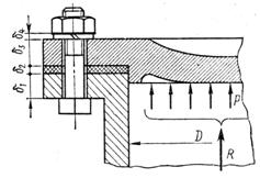 є прогонич для кріплення кришок резервуарів, навантажених тиском р рідини або газу (рис. 9). Затяжка прогоничів