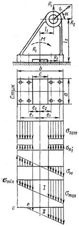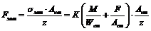 напруги згину від сили затяжки та розтягу від сили F розподіляються рівномірно по всій площині стику. Зусилля у