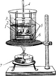 сталева кулька; 4 − термометр; 5 − металеві пластини; 6 −