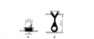 кулі на приладі «кільце і куля»: а - початкове; б - кінцеве