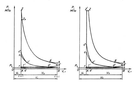 суміш за циклом із змішаним підведенням теплоти, zв'b" - розширення (до точки в'-політропне), в'b”r’rа' - випуск відпрацьованих газів.