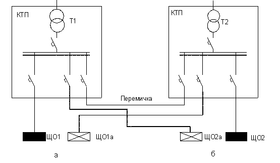 освітлювальної мережі від двох однотрансформаторних підстанцій з перемичкою між