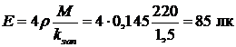 знаходимо коефіцієнт освітлення для одного такого прямокутника