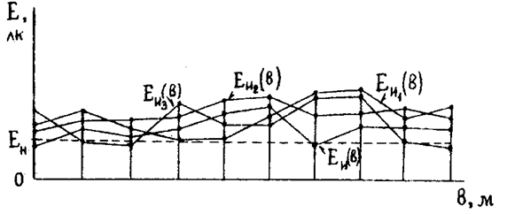 природної і змішаної освітленостей уздовж лінії