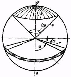 відповідає куту конуса із вершиною в центрі сфери, що відтинає в сфері радіусом
