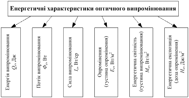 оптичного випромінювання ОВ користуються системою енергетичних величин.