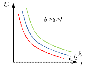 вольт-амперною характеристикою дуги. Вона залежить від довжини дуги l, матеріалу електродів і параметрів