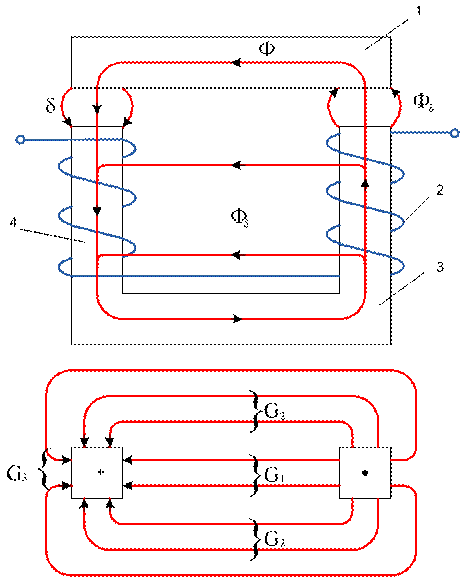магнітного кола 3 і 4 називаються стержнями. Через робочий зазор