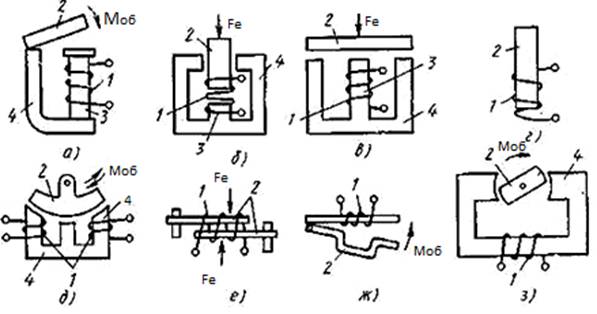 4.12, г, е) і замкненим магнітопроводом (рис. 4.12, а, б, в, д, ж, з). За