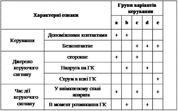 комутацію кола. Для зручності порівняльного аналізу СК безконтактною частиною апарата, характерні ознаки СК наведені в табл. 7.1.
