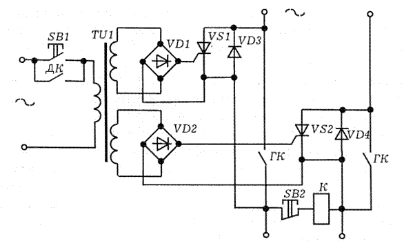 такою послідовністю спрацювання контактів забезпечується ввімкнення тиристорів