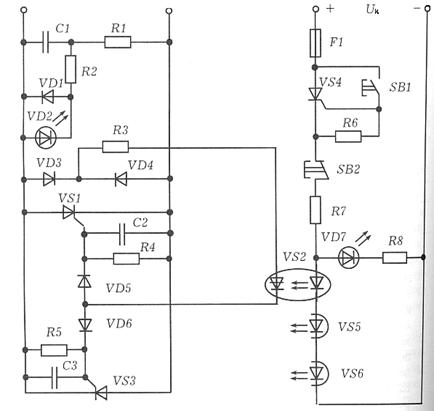 оптронних тиристорів, забезпечуючи подання напруги керування на тиристор ЕК та їх ввімкнення. Силові тиристори