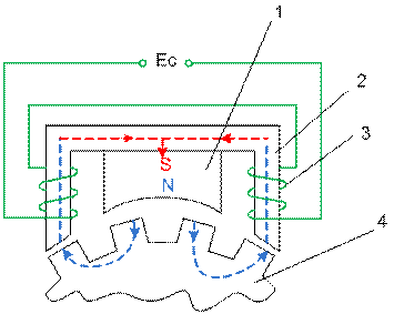 наведена на рис. 10.9. Давач складається з постійного магніту 1, який жорстко зв’язаний з
