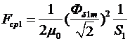 електромагнітних сил під полюсами за формулами (4.38) та (4.39):