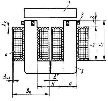 обмоткові дані, розміри котушки електромагніту змінного струму (рис. 4.4).