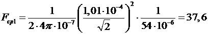значення електромагнітної сили (Н) в неекранованій частині полюса дорівнює: