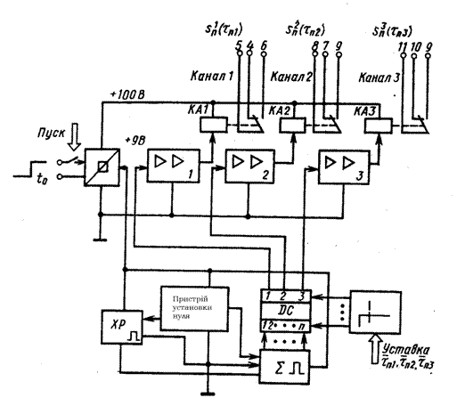 лицевій панелі РЧ програмні витримки часу для усіх його каналів за вказівкою