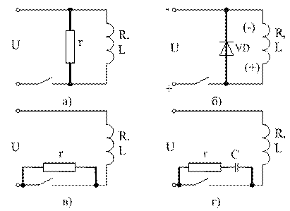 схемі на рис. 1.4, б контакти навантажені тільки струмом U/R і зворотнім