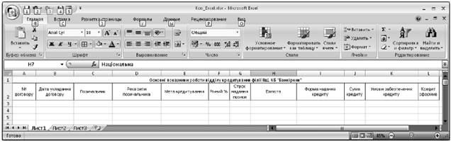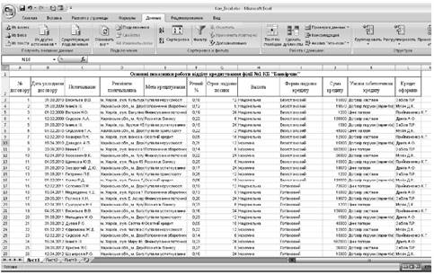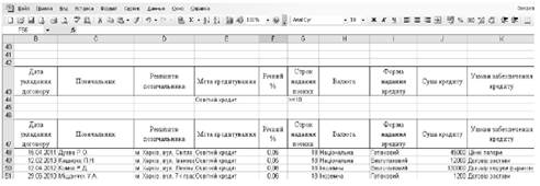 У середовищі табличного процесора MS Excel створити базу даних із вибраної предметної області, як наприклад ‒ основні роботи відділу кредитування філії № 1 КБ «Банкірчик», вхідна інформація для якої відповідає рис. 1.1.
