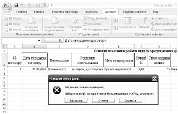 6. Неправильно введене значення в полі Дата укладання договору (рис. 1.6).
