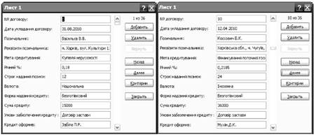 Рис. 1.8. Інформація про роботу банків у БД за допомогою форм