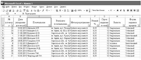 Рис. 1.10. База даних у MS Excel